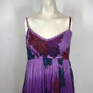 MKY - WOMEN'S SMALL - PURPLE FLORAL SPAGHETTI STRAP V NECK 100% RAYON DRESS