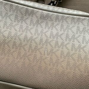 Double Zippered top Closure Silver Tone hardware Michael Kors Lettering Logo on Front Exterior Full length slip pocket at the back Inside: Double zippered compartment w/ 1 zippered & 1 slip pockets MK Signature fabric lining L: 8" x H: 4.5" x W: 3" w/ adjustable 20” crossbody strap In great used condition, wear as pictured