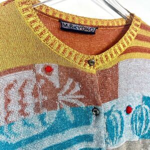 M & Kyoko Japanese Designer Womens Size F Textured Knit Colorful Patterned Sweater
