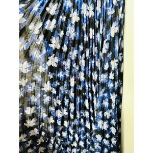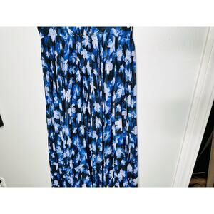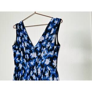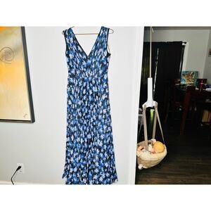 ML MONIQUE LHUILLIER Blue Black Melanie V-Neck Sleeveless Maxi Chiffon Dress size 6