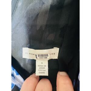 ML MONIQUE LHUILLIER Blue Black Melanie V-Neck Maxi Chiffon Dress size 6