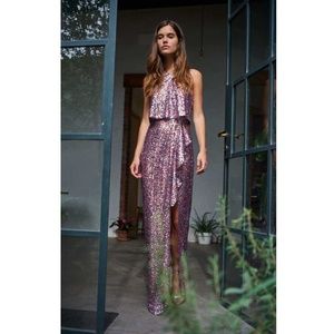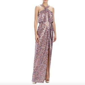 ML MONIQUE LHUILLIER Halter Sequined Gown