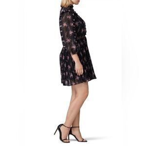 ML Monique Lhuillier Black/Pink Floral Mini Dress