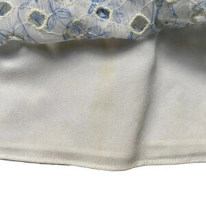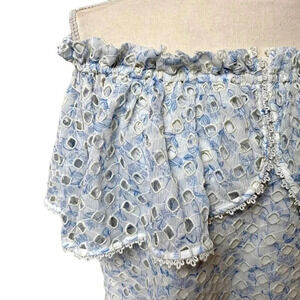 ML Monique Lhuillier Blue White Eyelet Off Shoulder Blouse Size Small