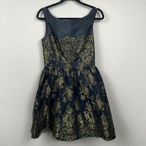 ML Monique L’huillier Gold Black Lace Fit Flare Mini Dress Party Birthday Sz 8