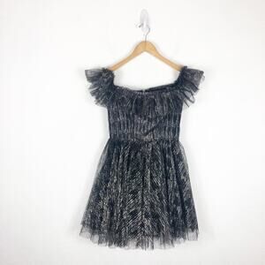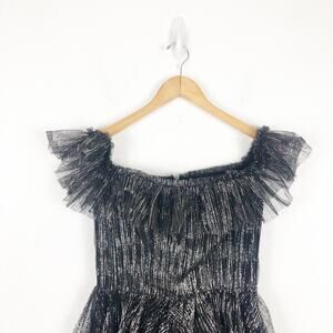 ML Monique Lhuillier Off-The-Shoulder Mini Dress Size 4 Glitter Tulle Cocktail