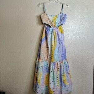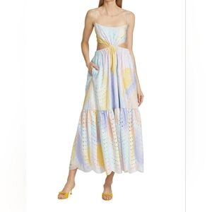 ML Monique Lhuillier Poplin Eyelet Cutout Midi Dress Sz 2