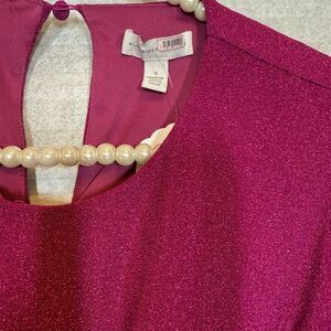 Pink knit (50% Nylon, 47.6% Lurex, 2.4% Spandex). Sheath.