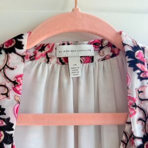 ML Monique Lhuillier Velvet Devore Burnout Paisley Mini Dress in Pink & Cream size 10