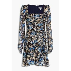 ML Monique Lhuillier Women's Ruched Floral Metallic Mini Sheath Dress Size 2