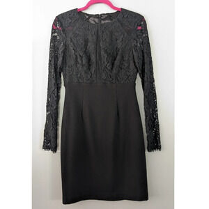 Lace bodice and sleeve cocktail dress by ML Monique Lhuillier.