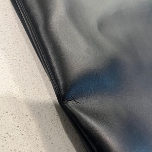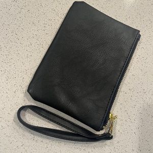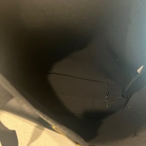 NOTE: tote has a scuff on bottom and wristlet has a scratch from being in storage but not from use. Please see last two photos for details. M