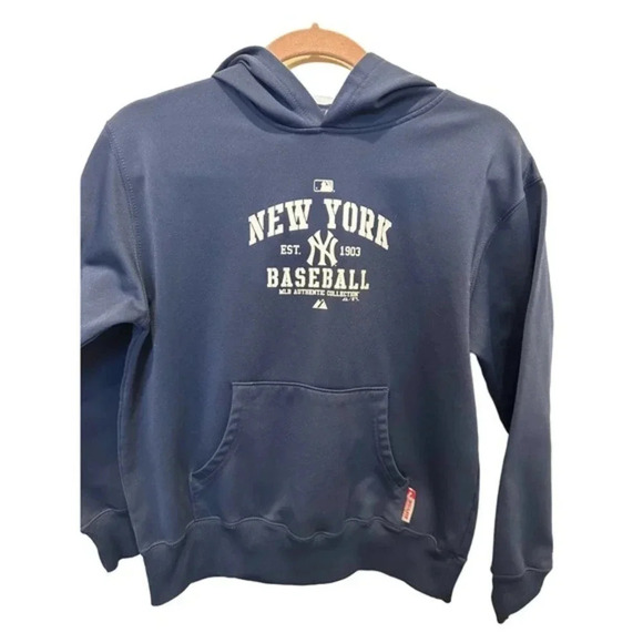 MLB Authentic Collection Blue New York Yankees Baseball Hoodie large