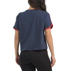 MLB Blue Premier Wordmark Dolphin Hem Crop Top