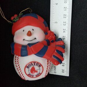 MLB Boston Red Sox LED Lighted Musical Baseball Snowmen Christmas Ornament Hat Scarf Color Red White Blue