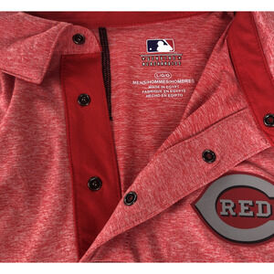 MLB Cincinnati Reds Men's Polo Shirt Large Short Sleeve Snaps Lightweight Red