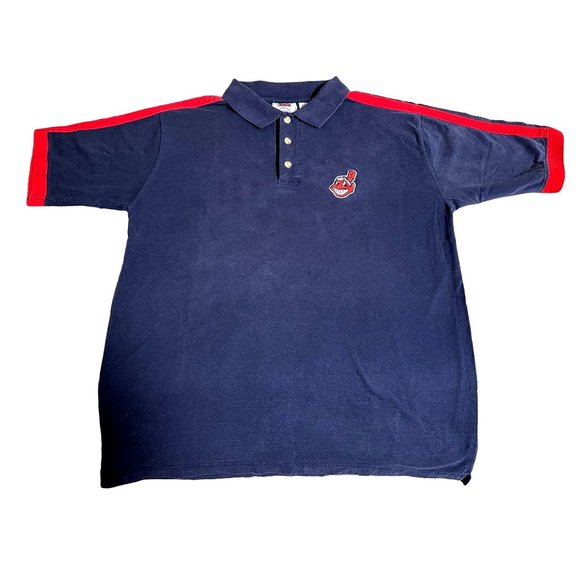 MLB Cleveland Indians Shirt Collar Button Chief Wahoo Tee Sz M Baseball Sports