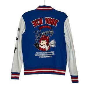 Jacket does have some blemishes, please see pictures. Otherwise, great condition