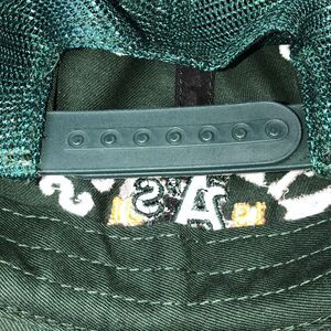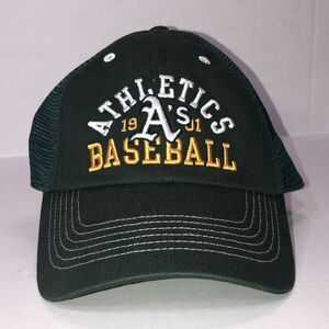 The MLB Oakland Athletics A's Curved Bill Mesh Trucker Adjustable Snapback Hat Cap is a vintage-style baseball cap perfect for casual occasions. Made from a lightweight canvas fabric with a mesh back, this hat features 3D embroidered "Athletics A's" text on the front and an adjustable snapback for a comfortable fit. The unstructured crown and curved bill give it a classic look, while the breathable design is ideal for wearing in any season. This officially licensed cap is perfect for any Oakland A's fan looking to represent their favorite MLB team.***EUC!