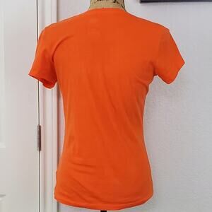 Short sleeves with jewel neckline. Glitter green writing. Chest 18". Length 24". MEASUREMENTS ARE APPROXIMATE.