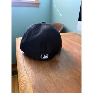 The product is an MLB Seattle Mariners Official On Field Navy Blue Fitted Baseball Hat Cap in size 7 1/2. It is specifically designed for fans of the Seattle Mariners baseball team, featuring the team's colors and logo. The fitted design ensures a comfortable and secure fit for wear during games or everyday wear. This official on-field cap allows fans to show their support for the Seattle Mariners while representing the Major League Baseball league.