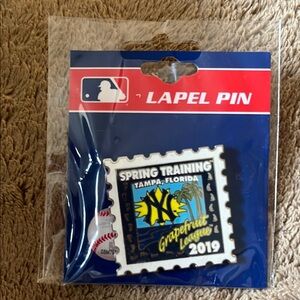 Official 2019 MLB Spring Training lapel pin for the New York Yankees, commemorating their Grapefruit League games in Tampa, Florida