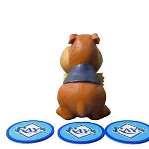 MLB TAMPA BAY RAYS BULLDOG BEWARE OF RAYS FANS 8” STATUTE AND SET OF 3 RUBBER COASTERS GOOD CONDITION