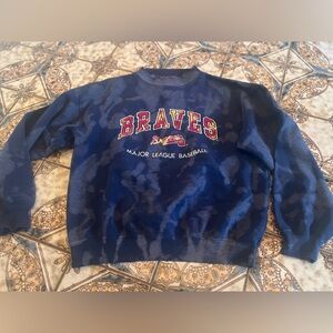 MLB vintage 80s/90s weave Atlanta braves pullover sweatshirt - logo athletic genuine merchandise Size large - good cond for being vintage Multicolor design embroidered wording tie dye like look - measurements posted