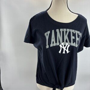 New York Yankees T-Shirt Womens Size Small. Brand new with tags. Crewneck, short sleeve, tie front. Measurements Laying Flat: Length 21", Pit to pit 17.5"