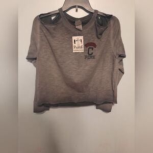 MLB x Pink Three Strikes Cropped Cold Shoulder Gray Sweatshirt Top Cleveland XS