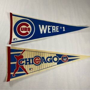 MLB Chicago Cubs Baseball Pennants Vintage 1980's Lot of 2 Different Team Logo