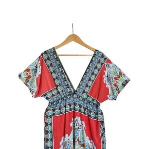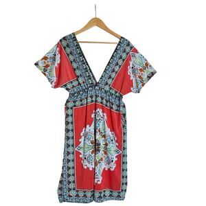 MLJY Women's Boho V-Neck Milk Silk Summer Beach Coverup Dress Size L Multicolor