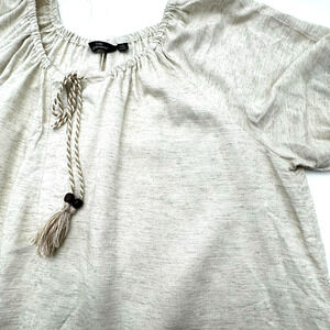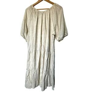 MLLE GABRIELLE 3X Beige Midi Dress Boho Peasant Lagenlook Tassel Tie Ruffle Tier