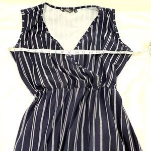 MLLE GABRIELLE sleeveless blue and white striped jumpsuit size large.please see measurements and description mo rips no tears