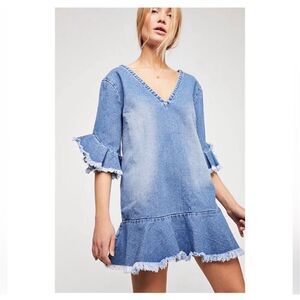 MLM Label Henri Denim Jean Dress Raw Hem V Neck Size XS