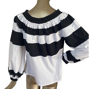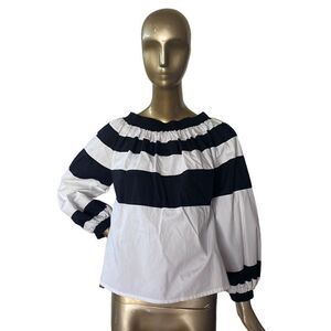 The is a gorgeous 100% cotton color block top with elastic neck that can be worn off the shoulders as well