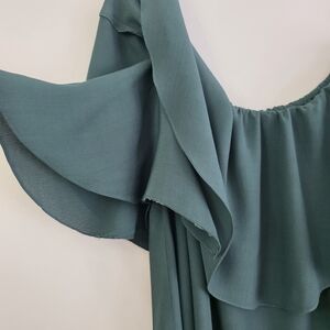 Stylish off-shoulder blouse with layered ruffles. Perfect for a trendy outfit. Slight sign of wear around the trim but can be ironed so it isn't visible.