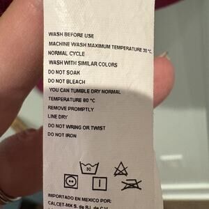 Care instructions: Machine wash cold 30° C, tumble dry low or line dry, do not bleach or iron. See photos for full care details