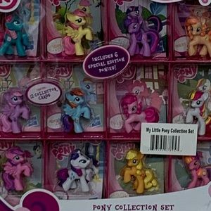 Never been opened mini figure set that includes 12 popular My Little Ponies, each have a collector card, & Six of them are SPECIAL EDITION!!