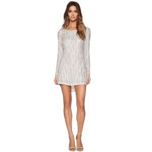 MLV Maison La Vie Tyler x Revolve Ivory Sequined Mini Dress Long Sleeve Backless Fully Beaded Lined