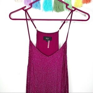 MLV by MAYREN LEE VIRAY Pink Magenta Rhinestone Sequin Beaded Embellished Sparkle Spaghetti Strap Swing Slip Dress Size Medium