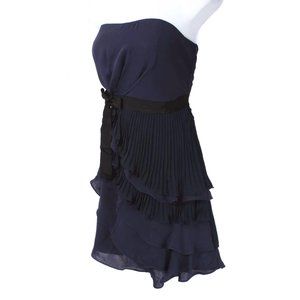 MM COUTURE Navy Blue Chiffon Ruffle Pleated Strapless Party Dress NWT Size S