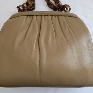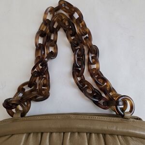 MM Capeskin Morris Moskowitz vintage pleated leather tan clutch with tortoise chain and interior gold hardware pocket. Amazing condition, appears never used.