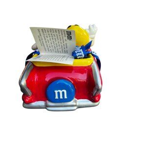 The candy is gone but the dish is in perfect condition and still has the M&M bow and original tag. The details on the ceramic hot rod are great with the single m logo being seen multiple times. The characters are red and yellow and the car is read with a flames on the side. Go M&M Lightning! This is a great addition for any M&M lover or collector.