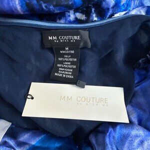 MM Couture By Miss Me Womens One Shoulder Top Blouse Medium Blue Abstract New