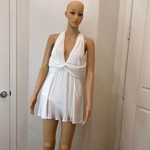 MM Couture By Miss Me Top Cream Ivory Off White Pleated Black Neck Tie Back