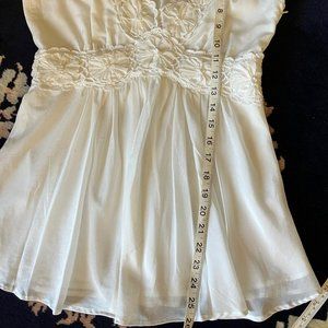 Beautiful white top by MM Couture. 70% cotton, 30% silk, with a polyester lining, very soft & comfortable. Size medium and in very good condition