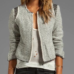 MM Couture by Miss Me Women's Tweed Jacket with Beads Small