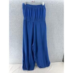 MM Couture sz M 100% Silk Strapless Cobalt Blue Jumpsuit Romper