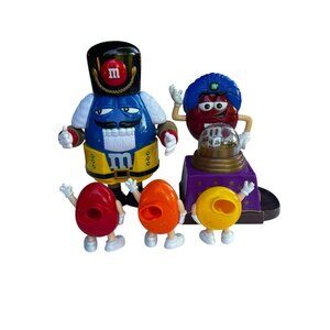 Over the years the M&M characters have become iconic. From the huge M&M stores in places like Las Vegas to the ads featuring the animated characters. They are known around the world for their shenanigans and for the great tasting candy they portray. This lot includes a large blue M&M "soldier" with a mouth that moves to dispense candy, a red M&M fortune teller and three pocket dispensers that access that candy through a door on the back. The two larger dispensers came out between 2005-2010, I am not sure about the smaller dispensers.